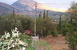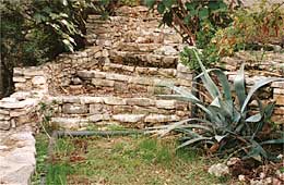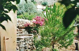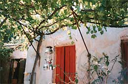 is shaded by a 7x4 sq m established vine. The garden, with water sprinkling